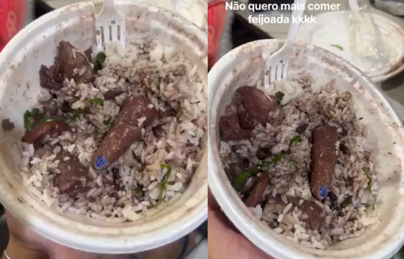 "Isso não é um dedo na minha feijoada não, né mano?", questiona o homem no vídeo, enquanto examina a marmita com desconfiança. Com uma mistura de nojo e incredulidade, ele ainda comenta: "Por que a unha tá pintada de azul?". A cena, que inicialmente parece assustadora, termina com a declaração categórica: "Não vou comer mais".